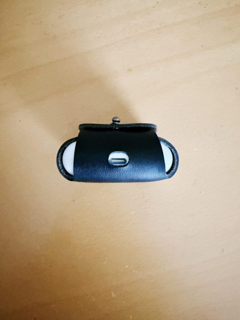 AirPods Proを丸ごとすっぽり入れるタイプではなく、四隅に空洞が空いています。