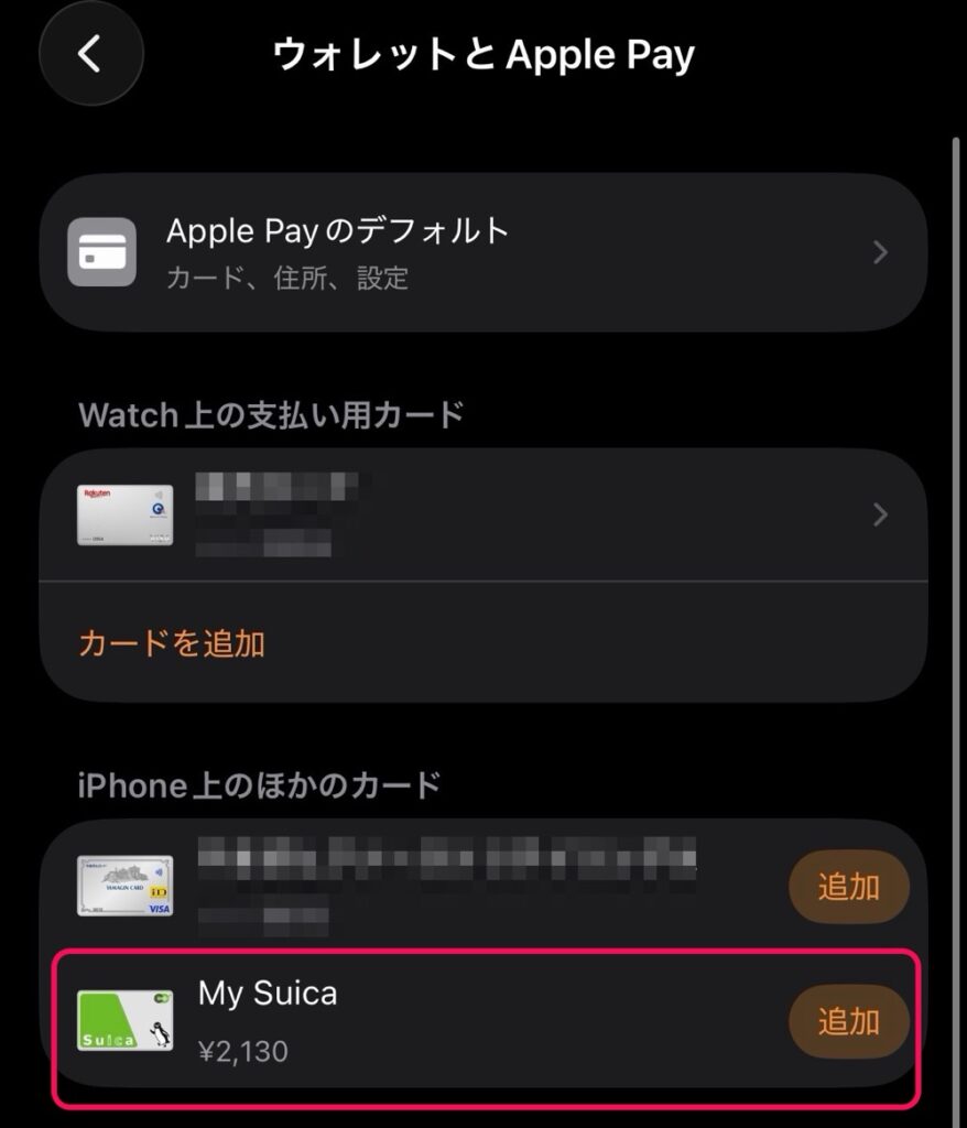 画面を下にスクロールし、「iPhone上のほかのカード」セクションを探します。