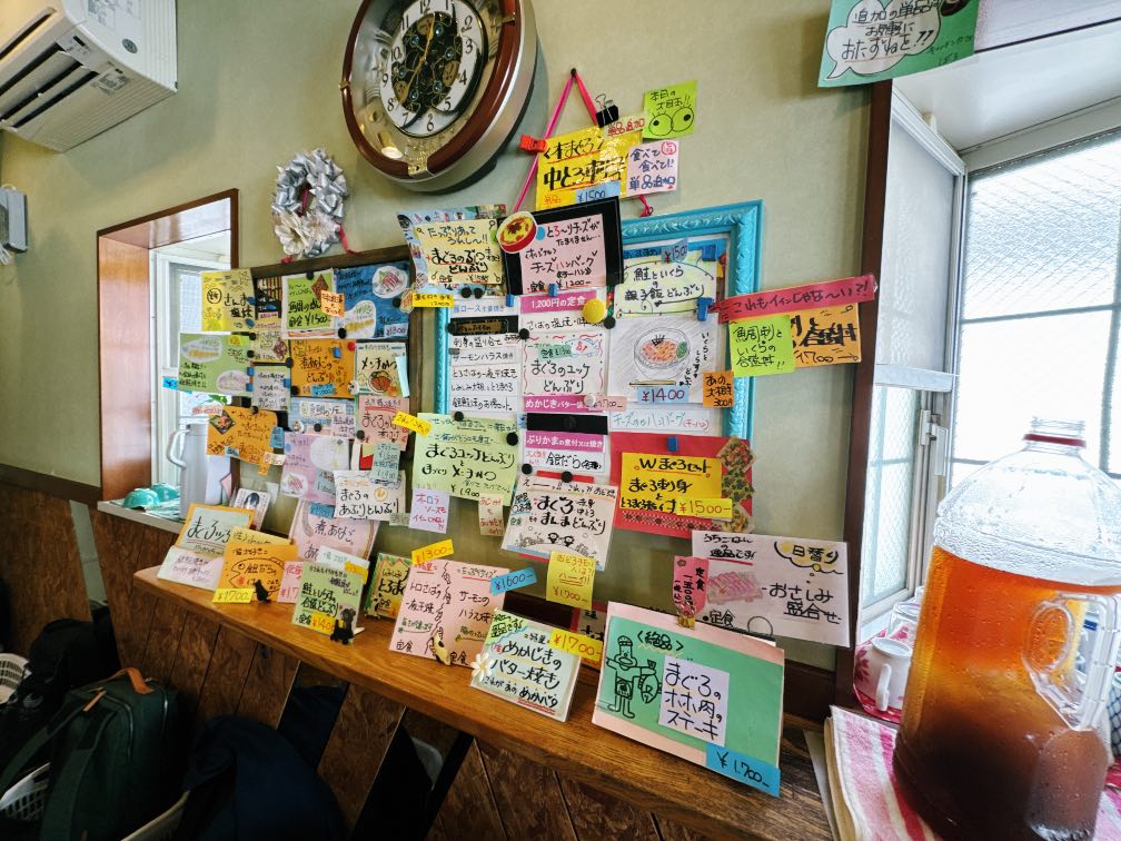 壁一面に張り出された手書きのメニューがあり、他のお客もこれを眺めながら注文を決めていました。