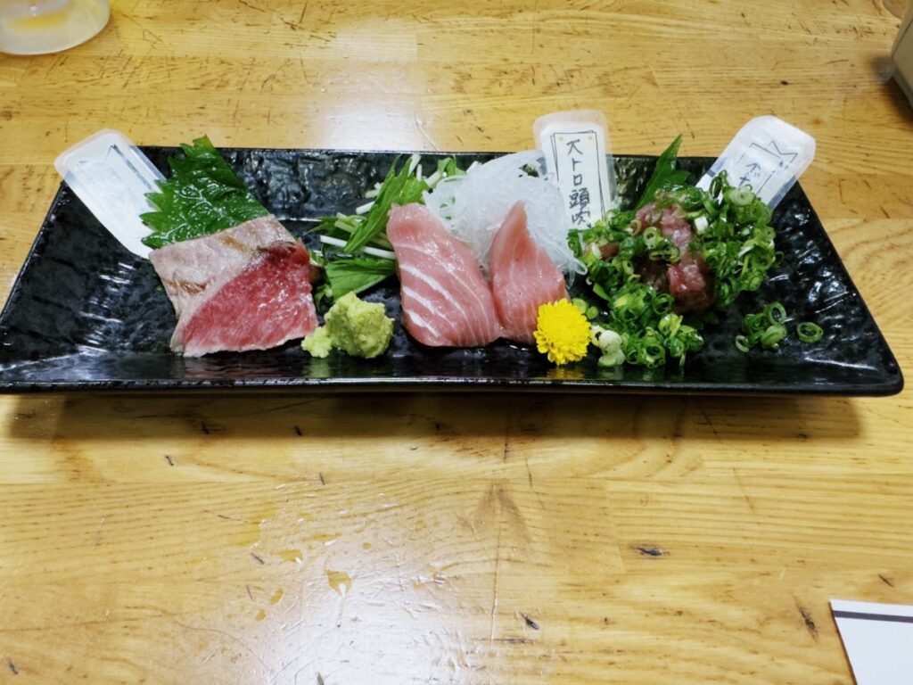 ほほ肉、大トロ頭肉、ネギトロの3つ。大トロ頭肉は期待通りのおいしさ。意外だったのがほほ肉で炙ってあったのか焼き目がついていて香ばしい上に非常に柔らかく美味でした。