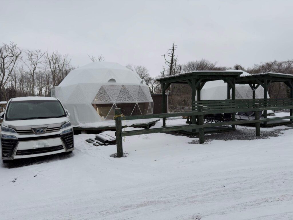 今回は真冬でしたが、外には複数のグランピング施設がありました。