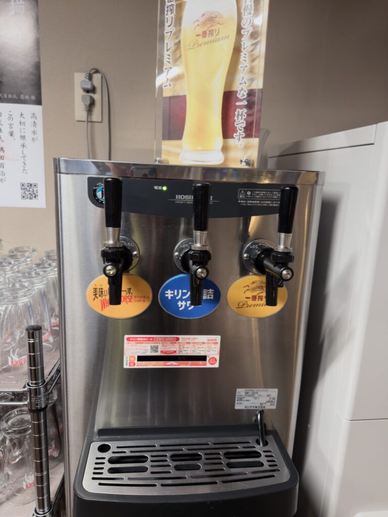 セルフサービスのサーバーからはビール、サワー、ハイボール。