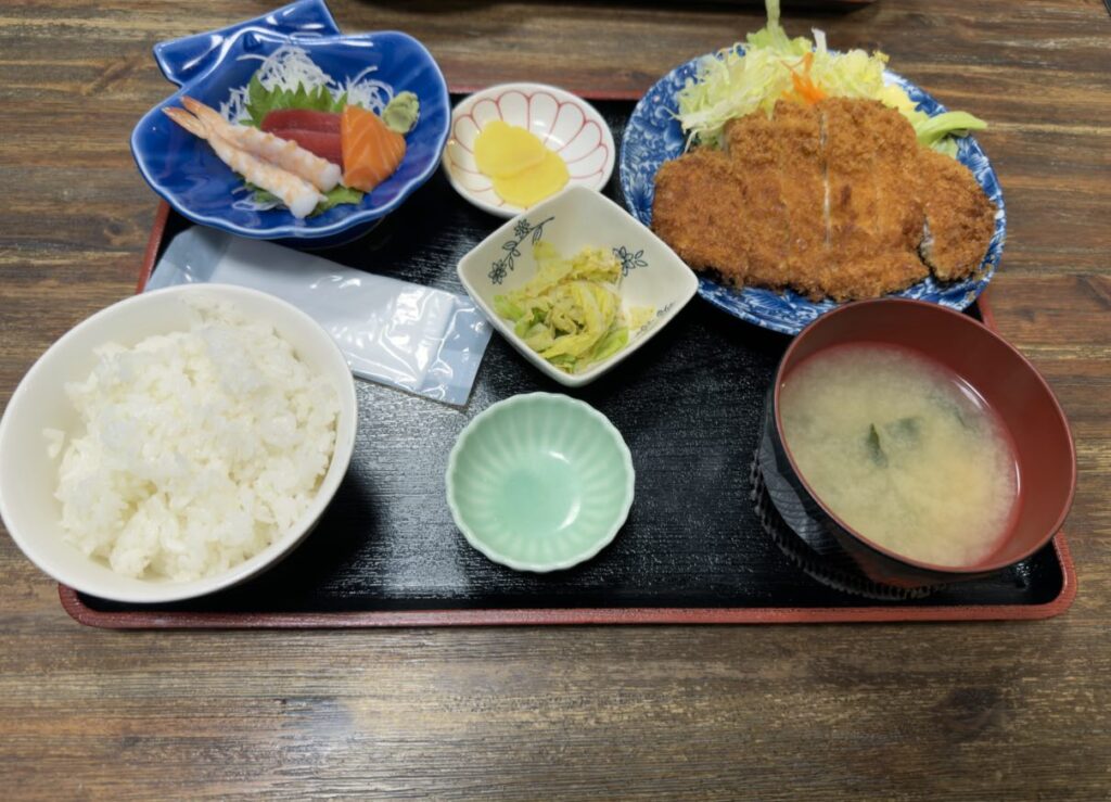 このお店の特徴が定食を頼むとお刺身がついてくること。