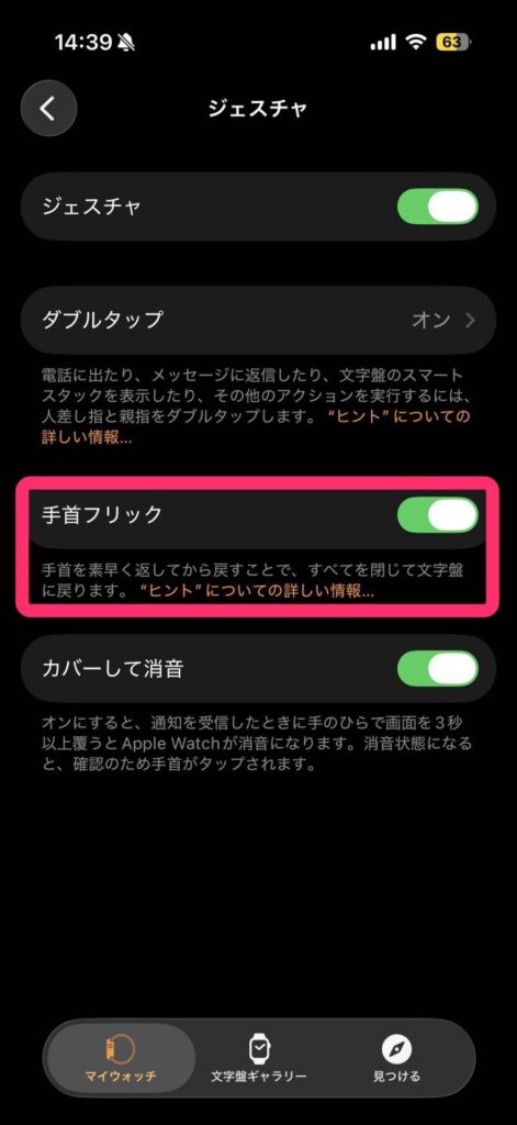 ご自身のApple Watchが最新のwatchOSにアップデートされていることを確認してください。通常、ジェスチャ機能は比較的新しいモデルや、特定のwatchOSバージョン以降でサポートされることが多いです。