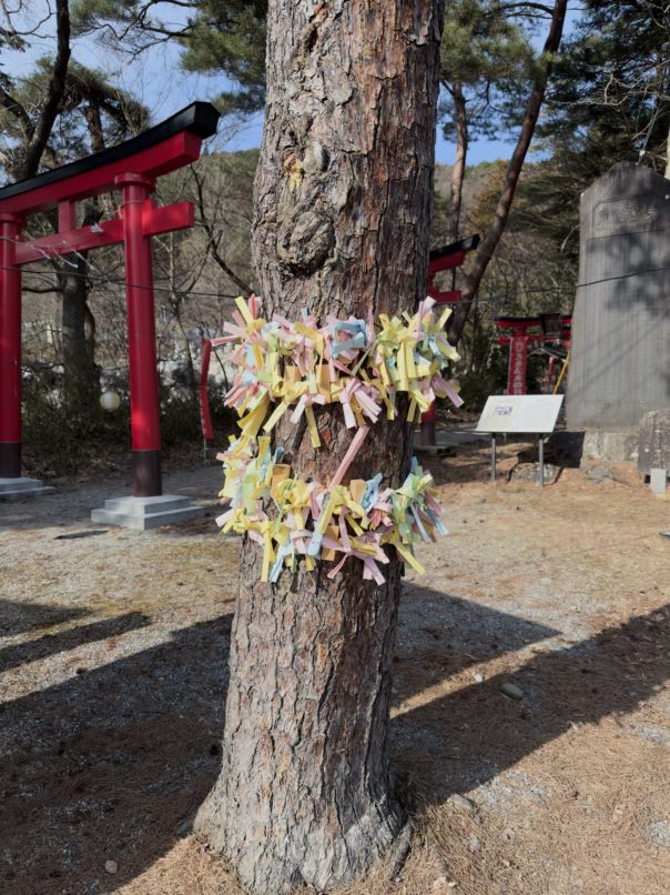 願い結びが無料でできたので、願い事を書いて木に結びました。