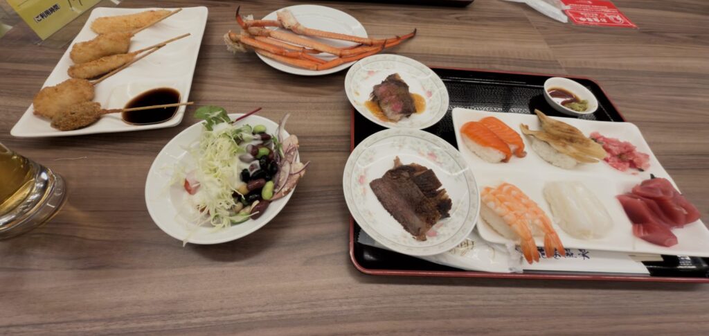 他にも、串カツ、お寿司にお刺身と食べきれないくらいの種類がありました。