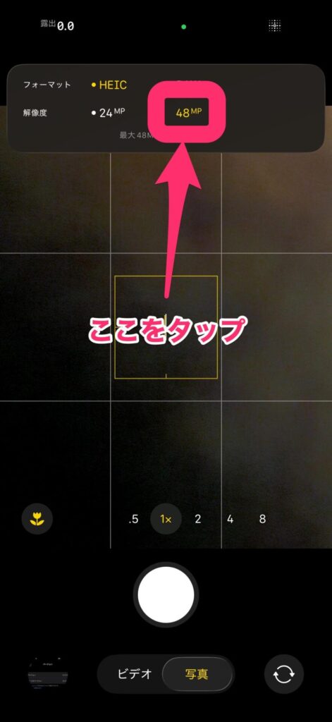 タップするごとに、「48MP」などの高解像度設定に切り替わります。