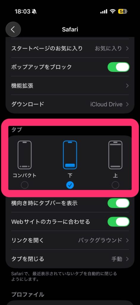 - 代替案: Webページの表示領域を広く保ちたい場合は、「コンパクト」設定のままで、タブの切り替えはタブバーを左右にスワイプすることで行う代替操作も有効です。