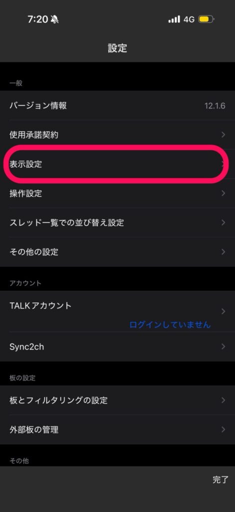 設定メニューの一覧が表示されたら、上から3番目付近にある「表示設定」を選択してください。